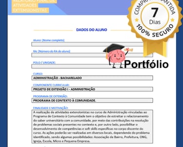 Aluno e Aluna, após realizar suas atividades de extensão, é necessário que você o formalize, enviando esse Relatório Final para ser avaliado junto ao seu Ambiente Virtual (AVA) e também para você poder comprovar sua atuação.